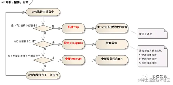 3.中断不是时钟同步的,这意味着中断可能随时到来;陷阱、异常是CPU产生的,所以,它是时钟同步的;