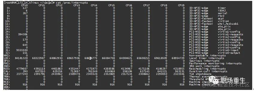 查看方式:cat /proc/interrupts