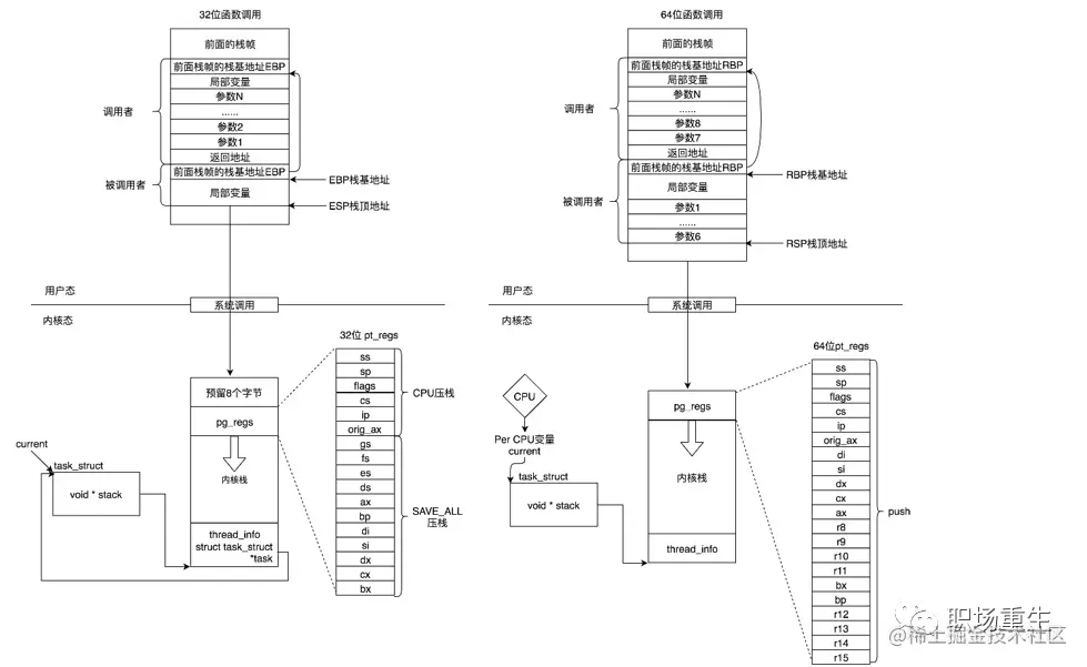 Linux系统调用CPU上下文切换堆栈结构: