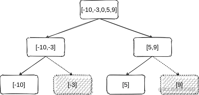 如果是偶数,取中间的两个任意的。如下要么-10为当前根-3为它的左子节点,要么-3为当前根-10为它的右子节点