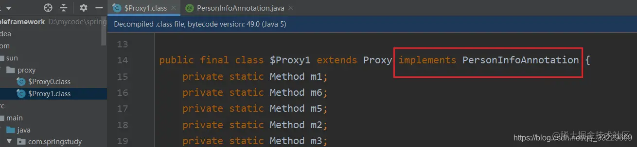 在生成的代理对象中, 可以看到其中一个是实现了PersonInfoAnnotation这个注解的.