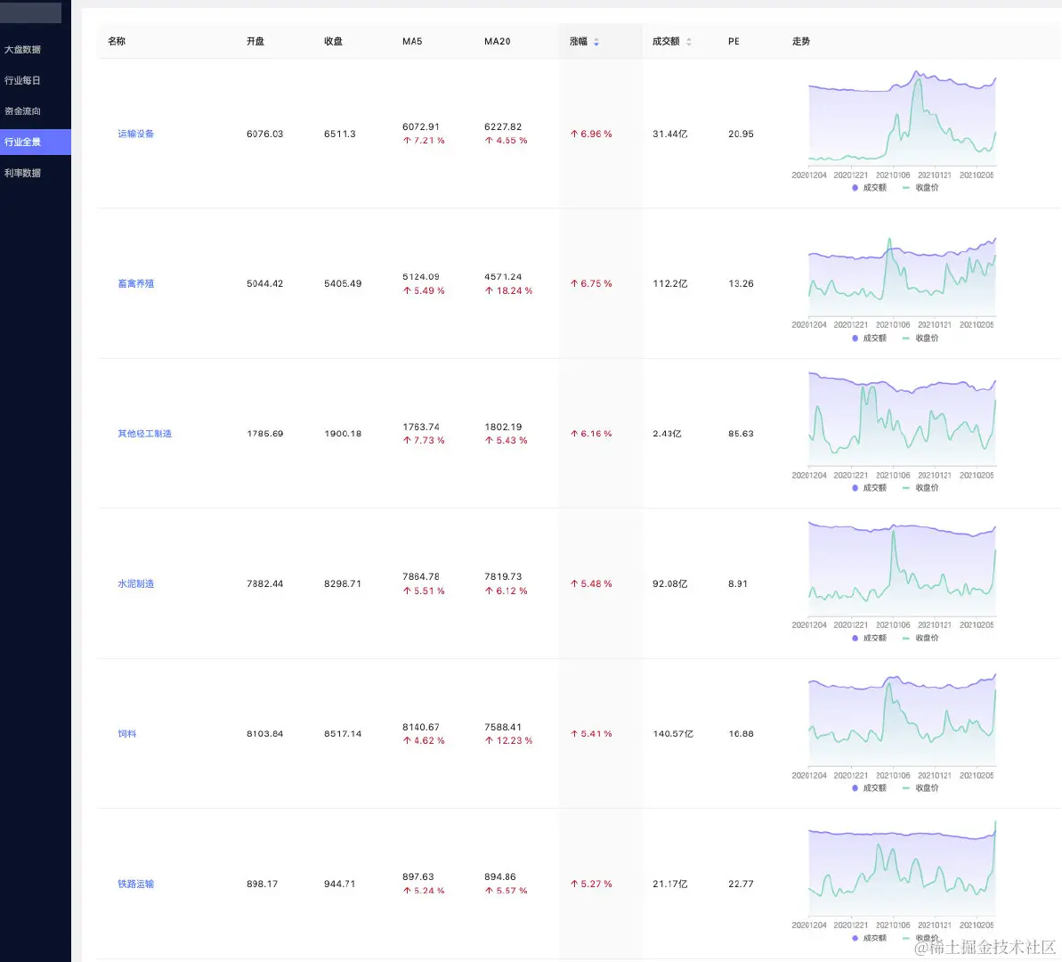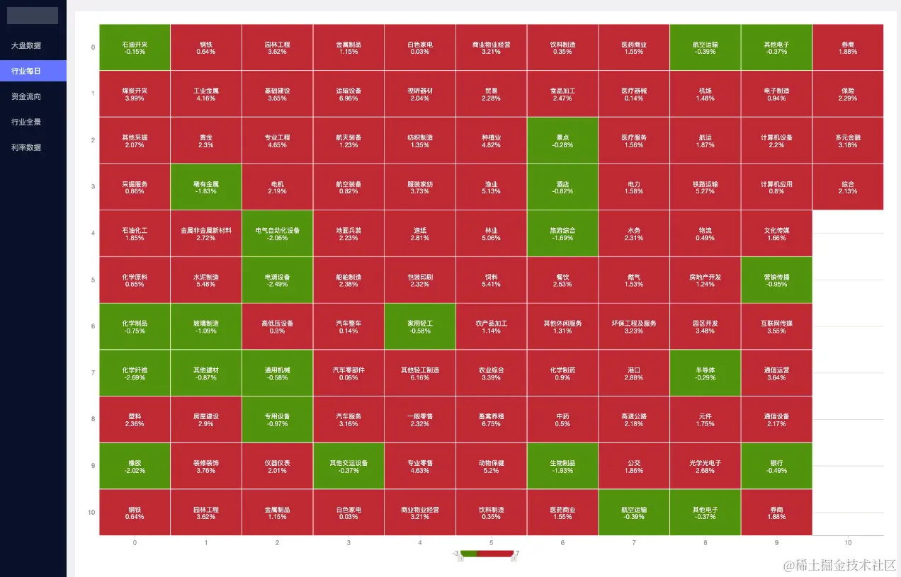 很久之前就想做个A股行业的每日宽度图。刚好今天春节不用回家有了一点时间,就当成前端入门实践了。
