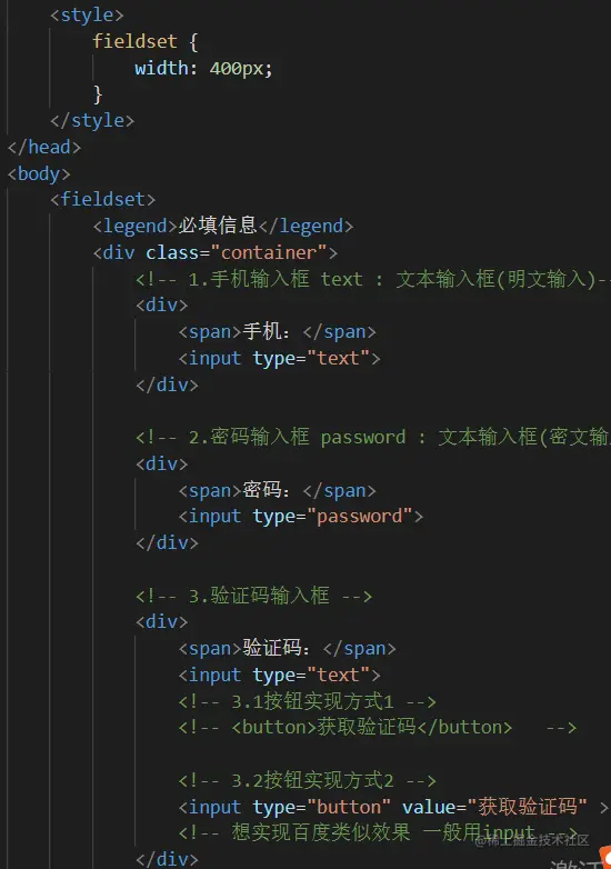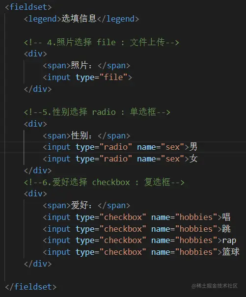 - fieldset 表单元素组
