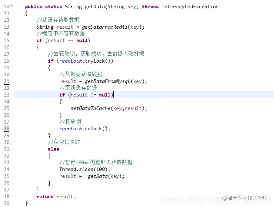 - 当然这是简化处理,理论上如果能根据key值加锁就更好了,就是线程A从数据库取key1的数据并不妨碍线程B取key2的数据,上面代码明显做不到这点。