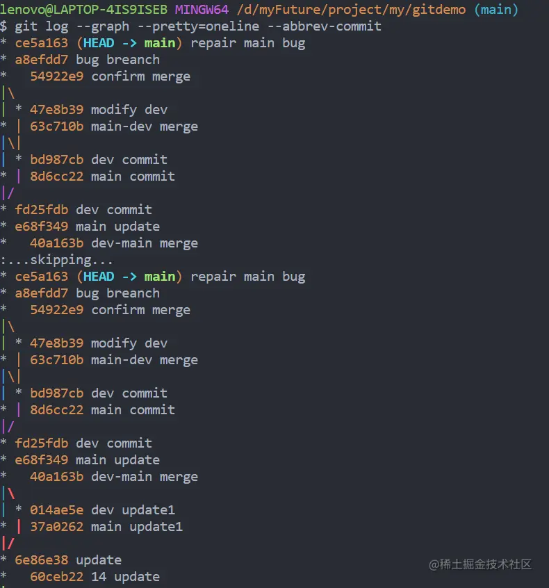 C和G的冲突解决, 然后A-B-C直接接到E的后面. 这就实现了流程图变成一条直线. 让我们可以更方便的进行code review.