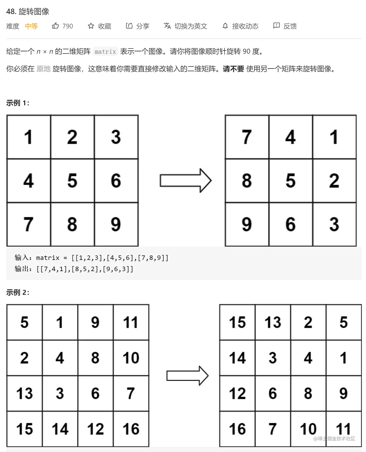 - 先转置(以左上到右下的对角线为轴,对称操作), 左上到右下为轴,在交换时写坐标更方便