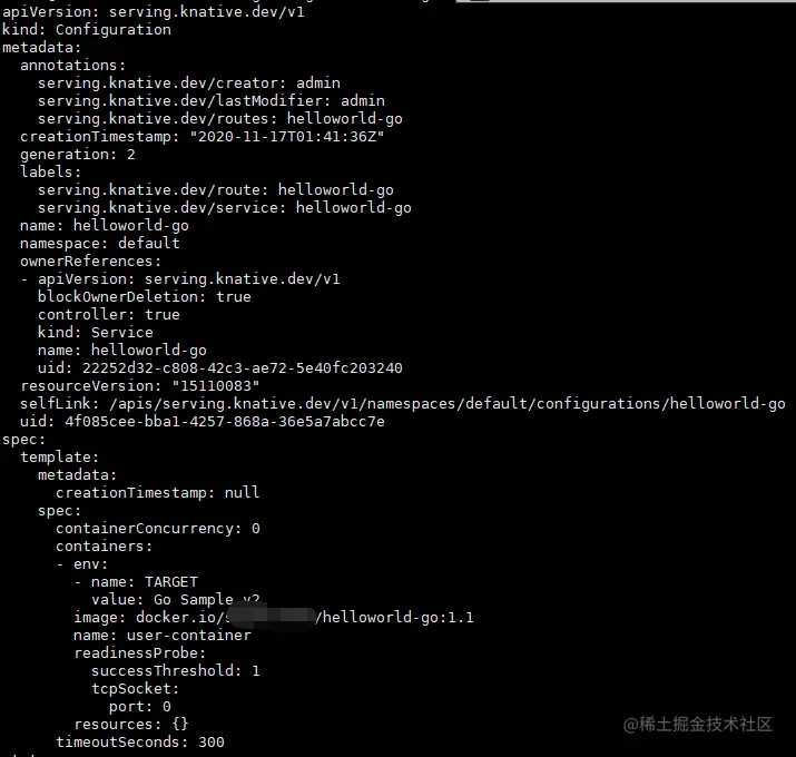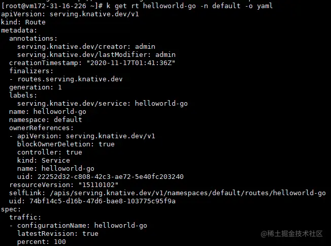configurationName=helloworld-go的Configuration的lastestReadyRevision上
