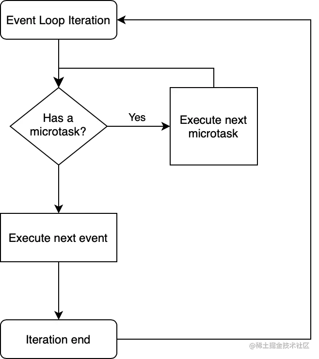 每次迭代先执行所有的微任务,然后再执行一个事件。循环重复。