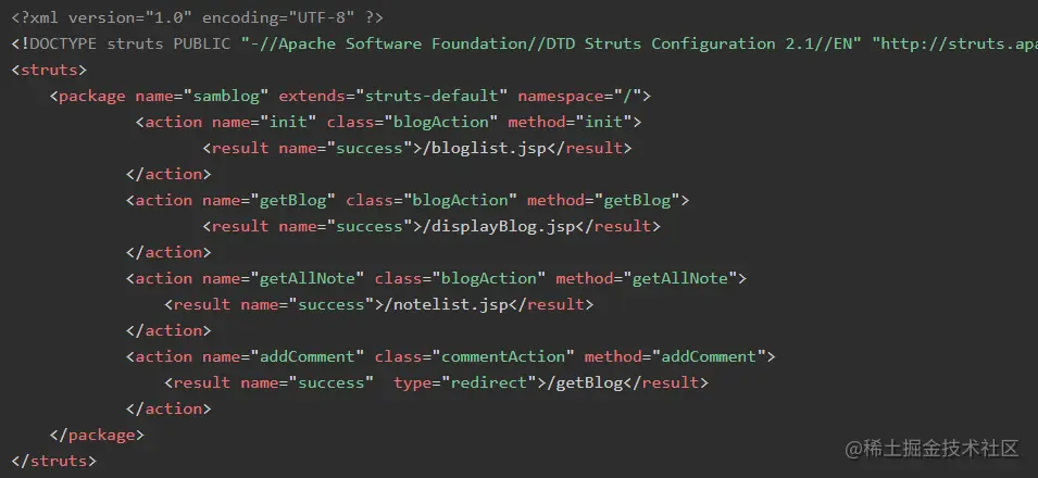 c.Struts2控制器根据配置调用一个Action对象处理。