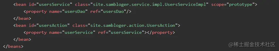 StrutsSpringObjectFactory负责创建,然后到Spring容器中寻找与Action属性匹配的Bean对象,给Action对象注入。(默认采用名称匹配规则)