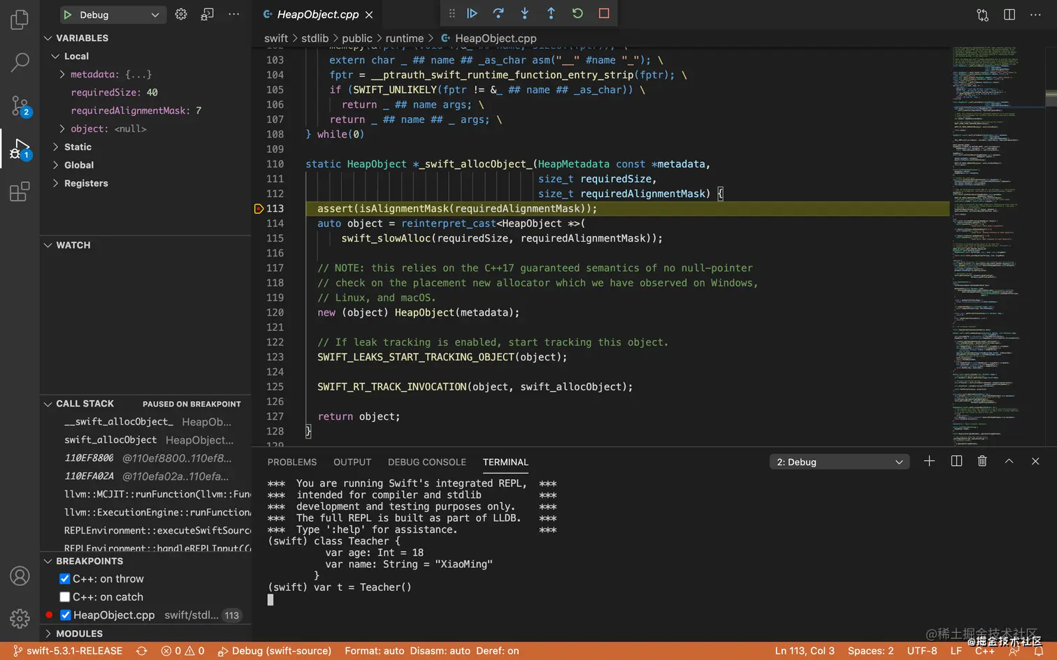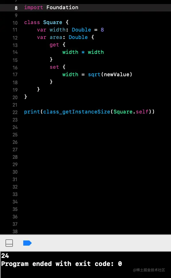 在控制台输入XCode中的代码,已知会调用一个swift_allocObject函数,搜索找到后打断点