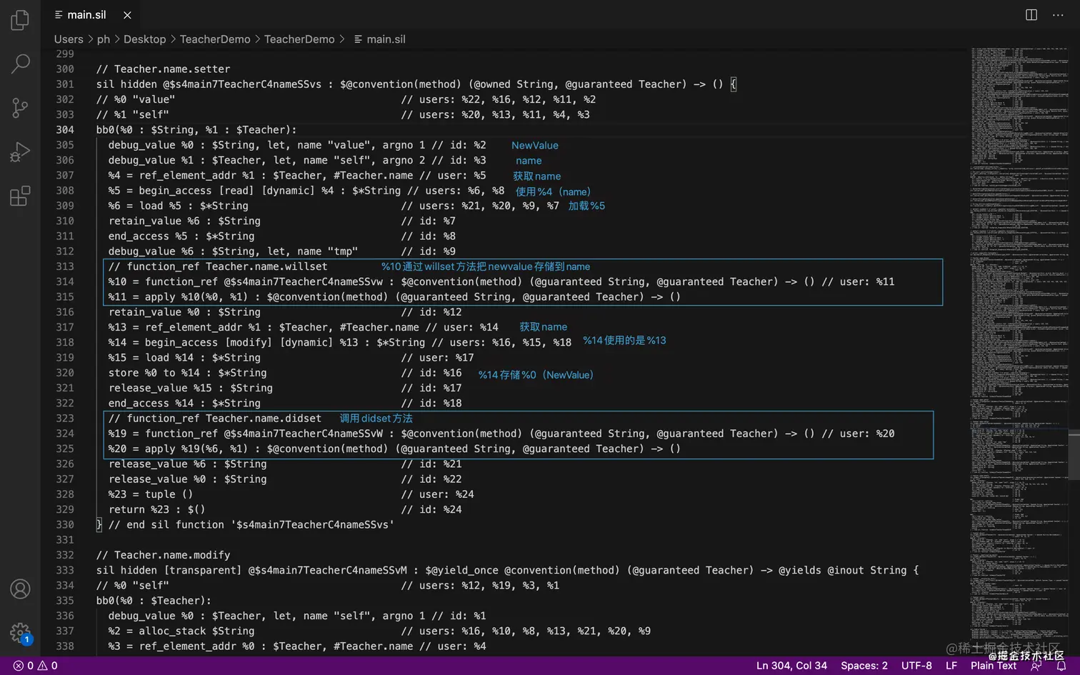 swiftc -emit-sil main.swift >> ./main.sil && open main.sil