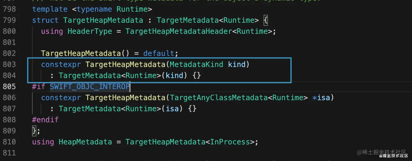 TargetHeapMetadata继承TargetMetadata 这里有一个初始化方法,点开查看MetadataKind
