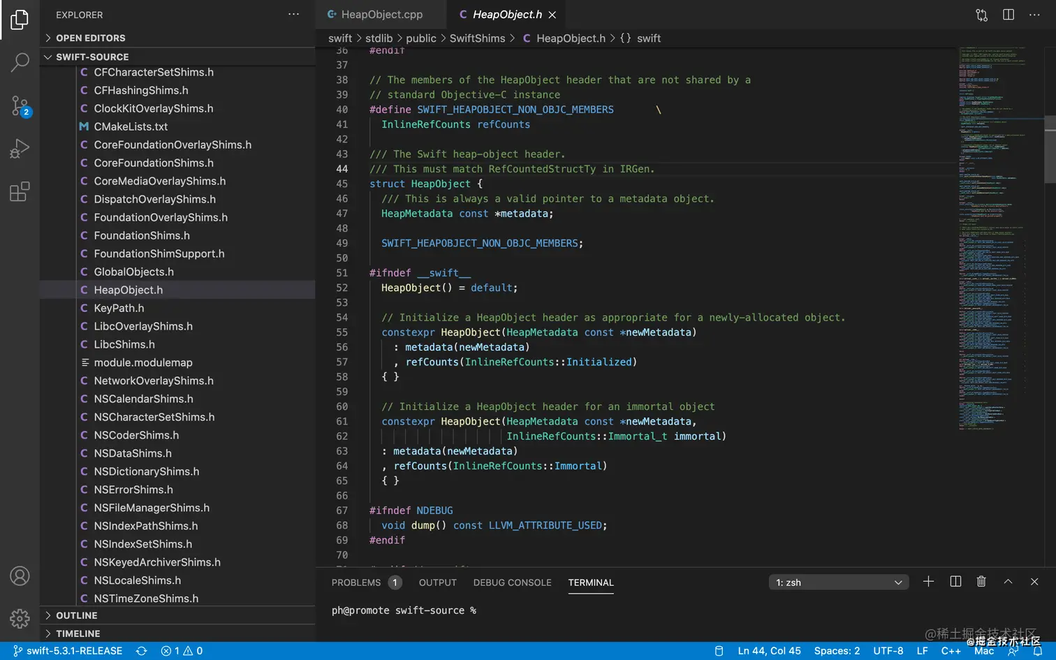 HeapObject,HeapObject是一个结构体,创建出来的实例变量在内存中的存储结构就是HeapObject,这个结构体中包含