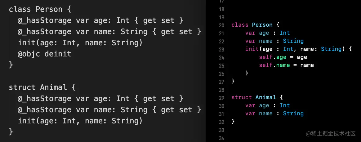 struct默认是帮我们生成init函数的,而class是需要我们手动创建