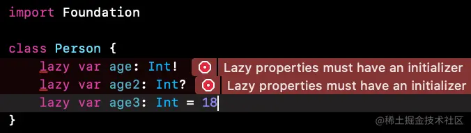 lazy修饰的存储属性 - 延迟存储属性必须有一个默认的初始值