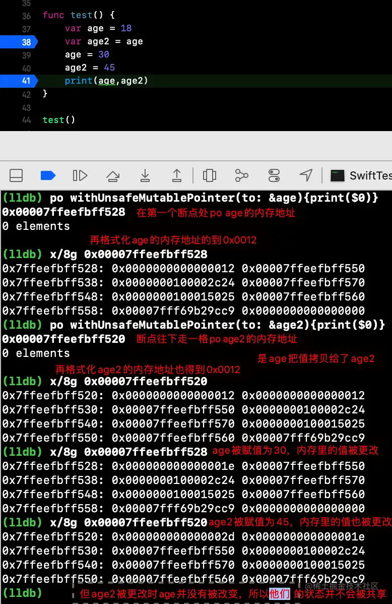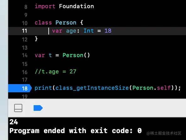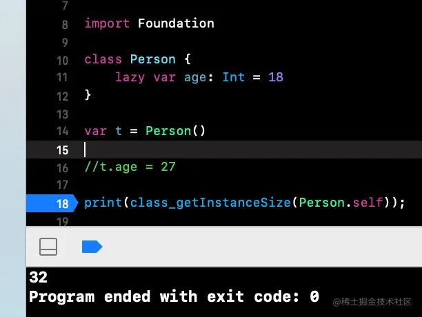 当走入下一个断点时,再去打印内存信息,查看到才有值,所以只有当第一次去访问age这个延迟存储属性时,才会进行赋值的操作