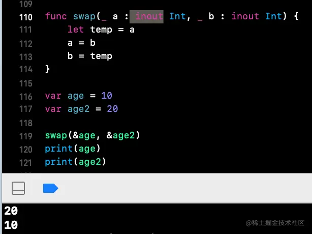 inout关键字后取的是地址了,也可以改变了