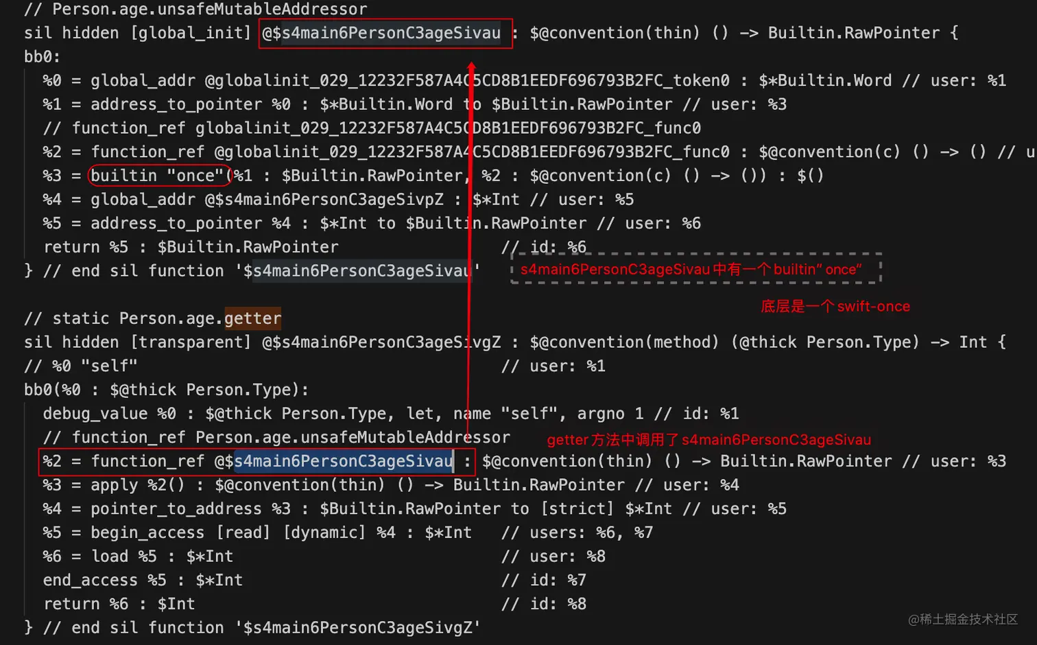 查看sil文件,因为是调用了age的getter方法所以直接看getter方法