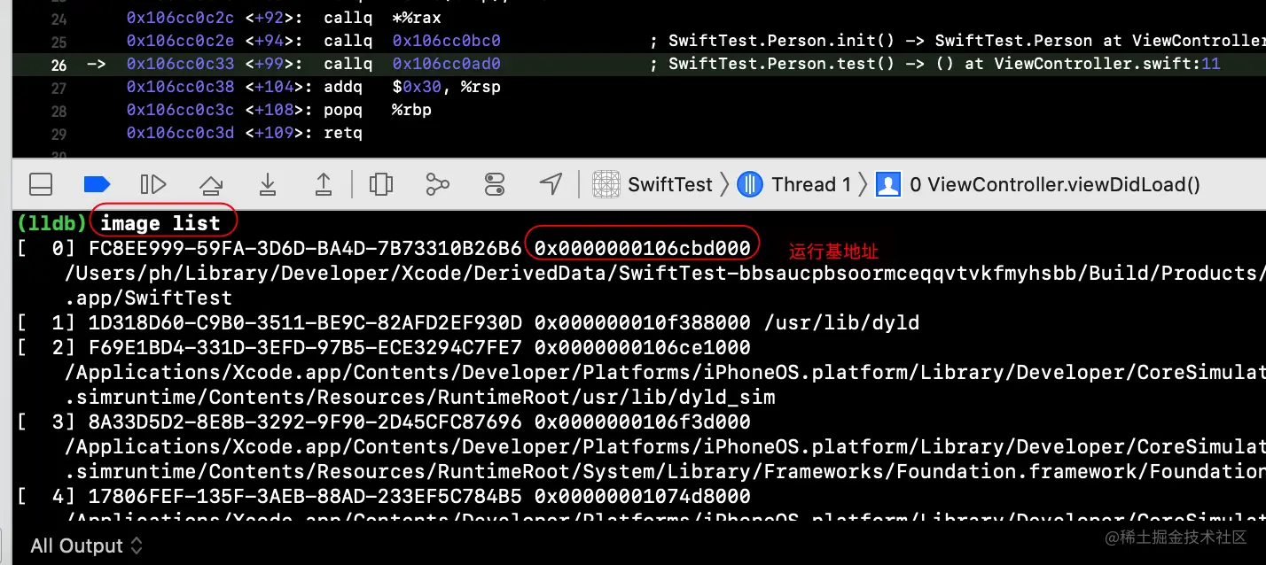 0x0000000100003ad0为编译链接地址