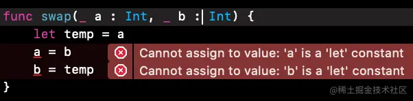 在函数的声明中默认的参数是不可变的,但是添加inout关键字后