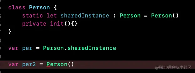 sharedInstance是全局的常量,并且只会被初始化一次,再把init方法设置成private在外部就可以直接调用shareInstance