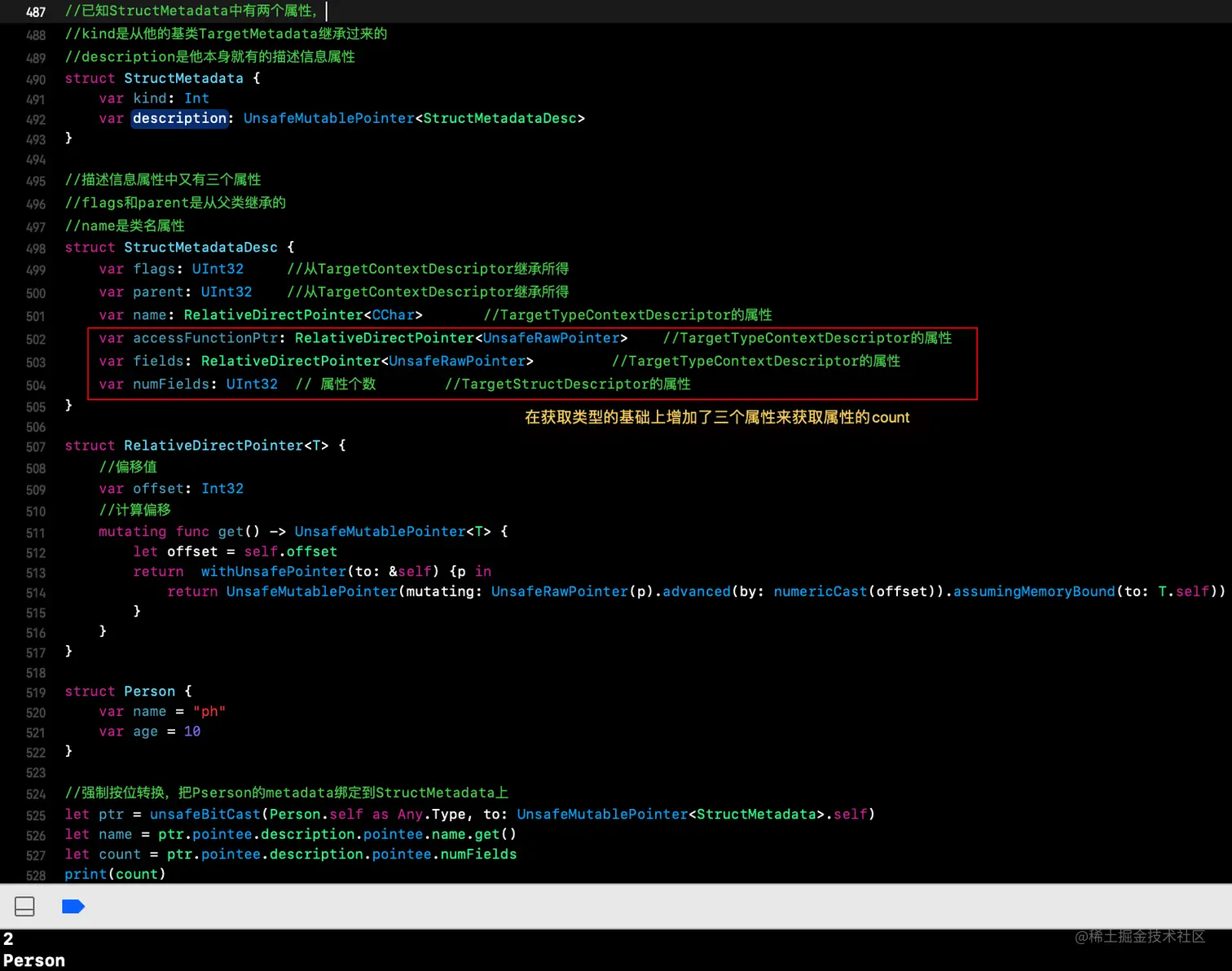 //强制按位转换,把Pserson的metadata绑定到StructMetadata上