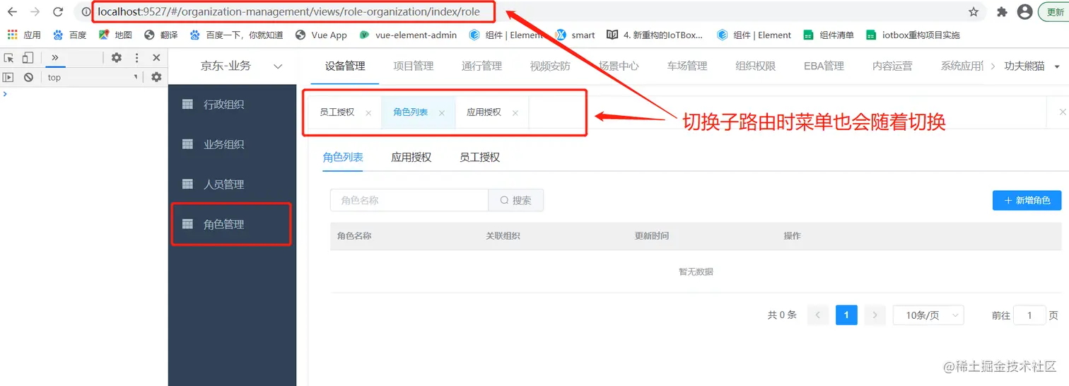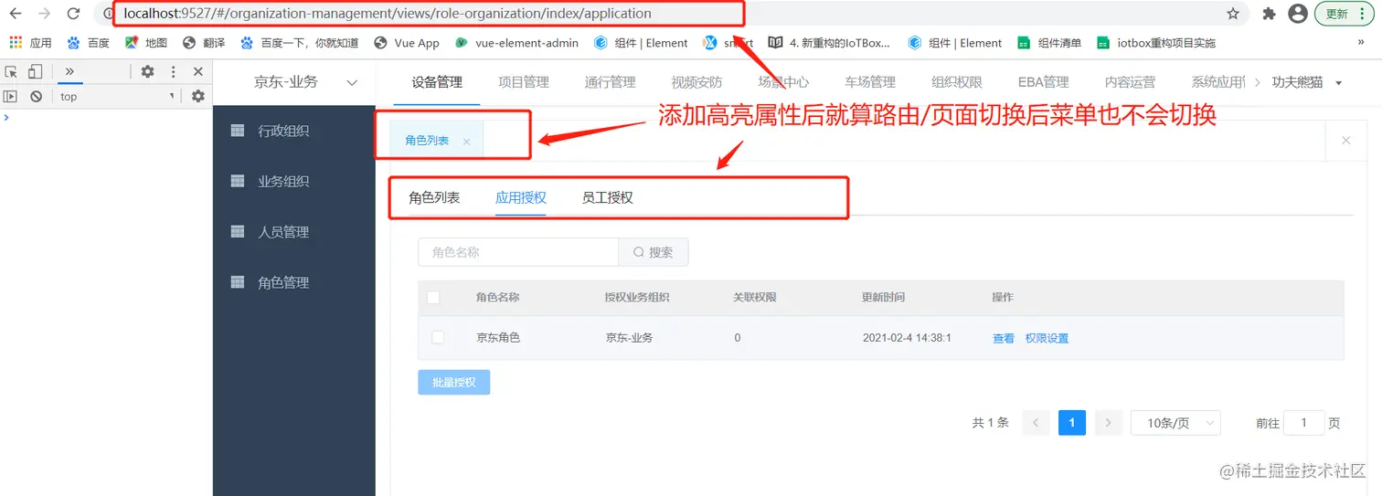 多个路由在同一个菜单下切换 摸鱼小巨人 2021-02-22 387 阅读1分钟 上面的菜单会根据路由切换, 如何做到在后台管理一个页面切换多个路由时,上面的菜单显示一直定位在所要求的同一个菜单, 在路由表中给当前路由下的每个子路由添加高亮属性tagName: '名字',