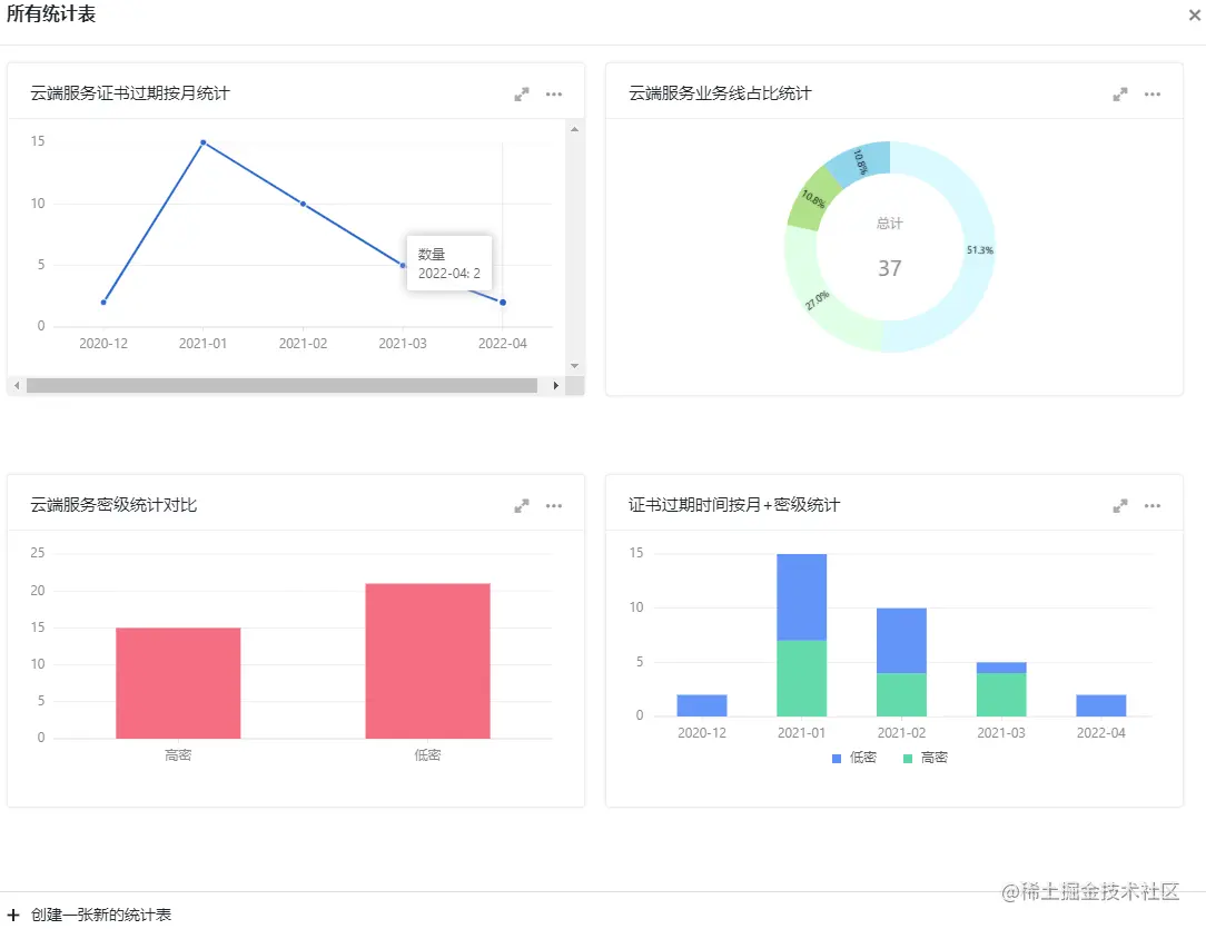 在灵活查看数据、可视化和统计分析等方面,SeaTable 有表格视图功能,有日历、时间线、图库、地图等实用的插件,也有便捷的“统计”功能等。我们可以根据数据特征去选择使用。比如可以在多视图间快速切换查看不同角度的数据;利用统计图表,来对这个记录了零散数据的网站运维表进行更直观的动态可视化。