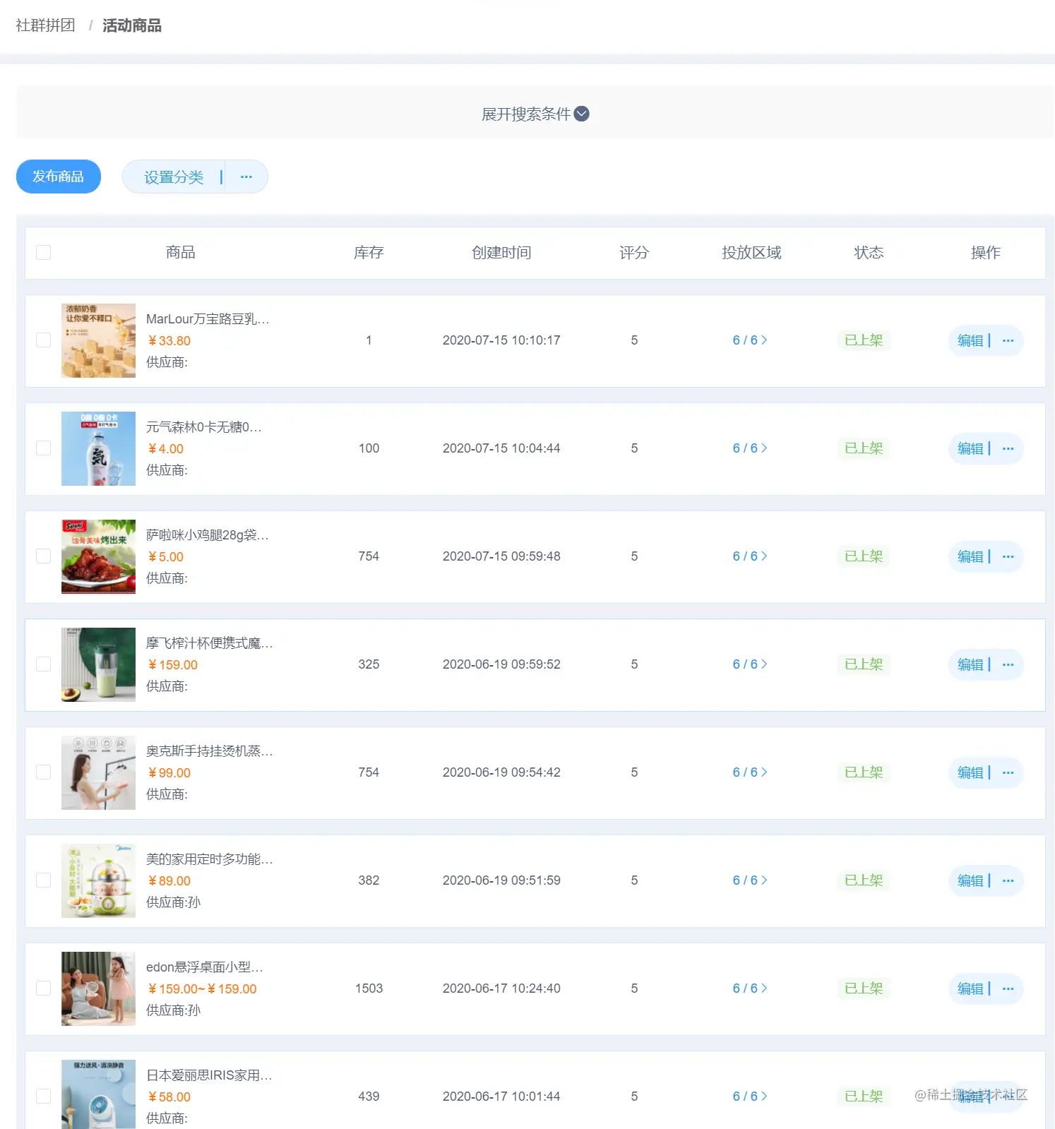 拼团活动 : 统一管理所有已创建成功的活动,进行中和即将开始的活动可以进行编辑等操作
