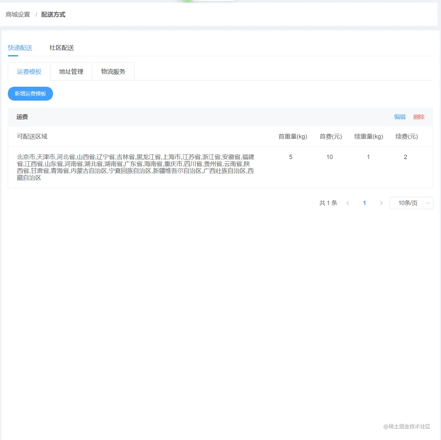 快递配送 : 设置多元运费模块(包邮|按件收费|按重量收费) 开通对应物流服务查看物流规则等等