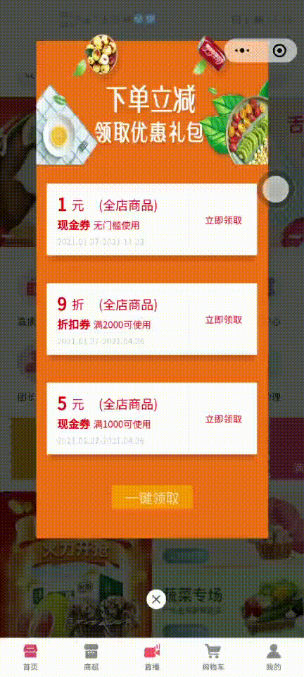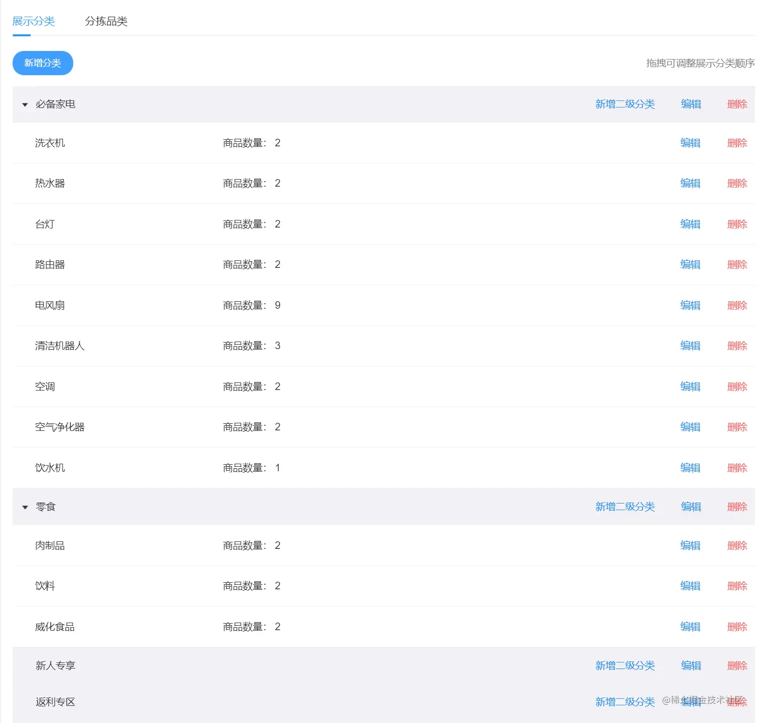 自定义商品专区: 商品按分区展示,并可以实时调整专区 秒杀 商超 拼团 自定义专区等等随时随意切换