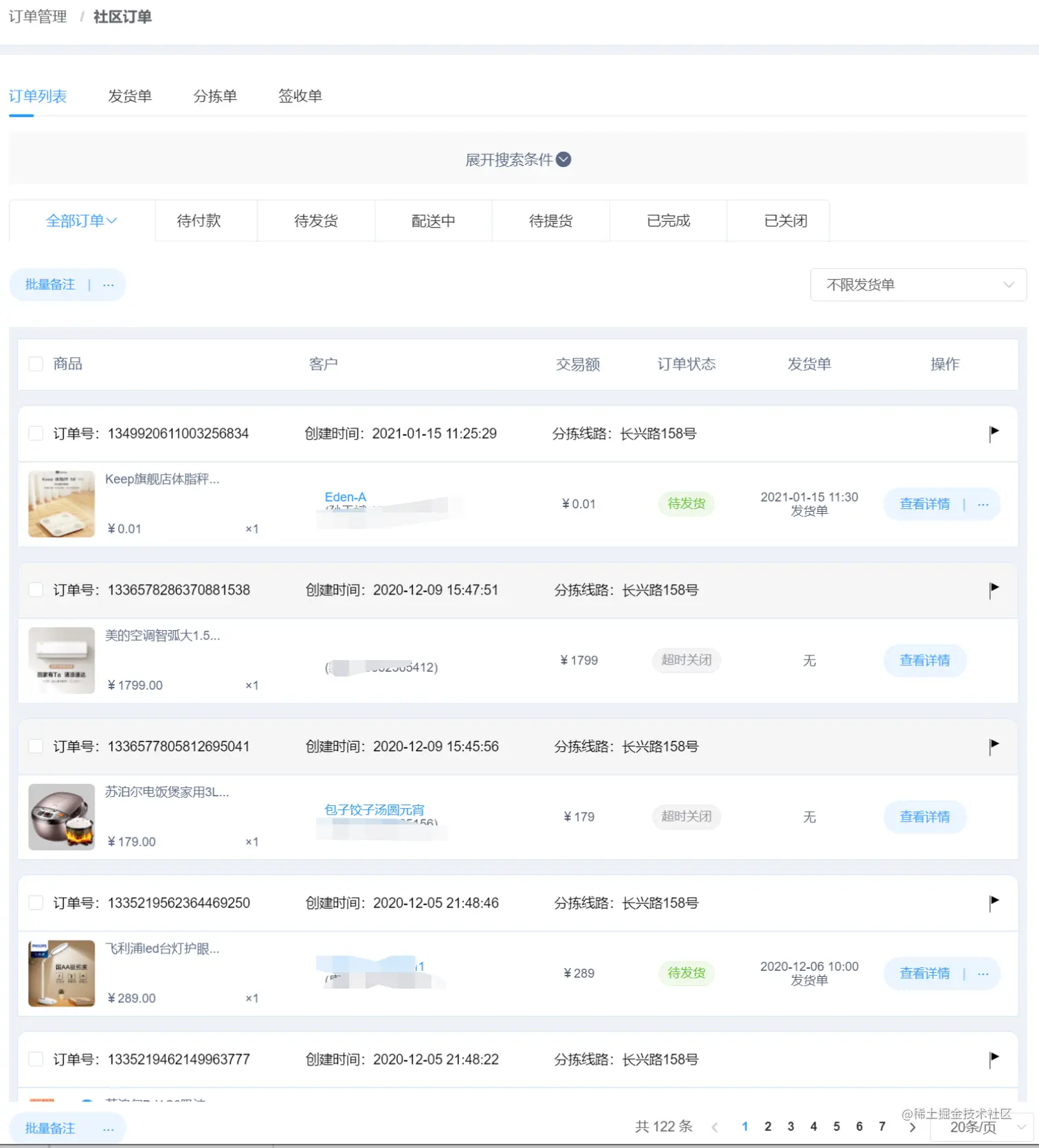 社区订单 : 社区形式订单,发货单 分拣单 签收单应有尽有一键导出表格更是提供给了商家最直观的数据进行分析
