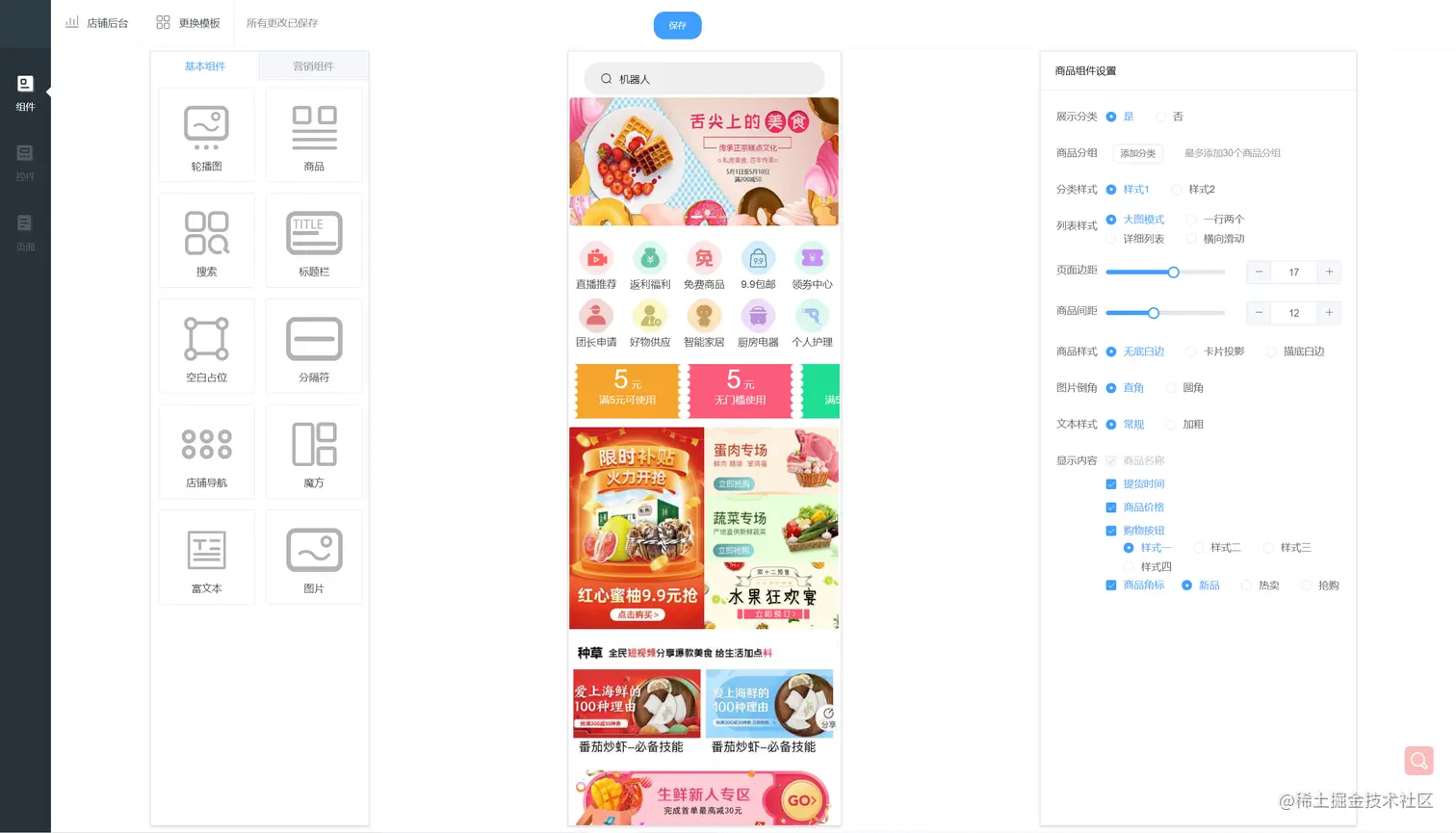 DIV装修 : 商家可通过自定义装修来根据自己的喜好装修小程序,比市场上的模板更多元化 操作更简单 玩法更多