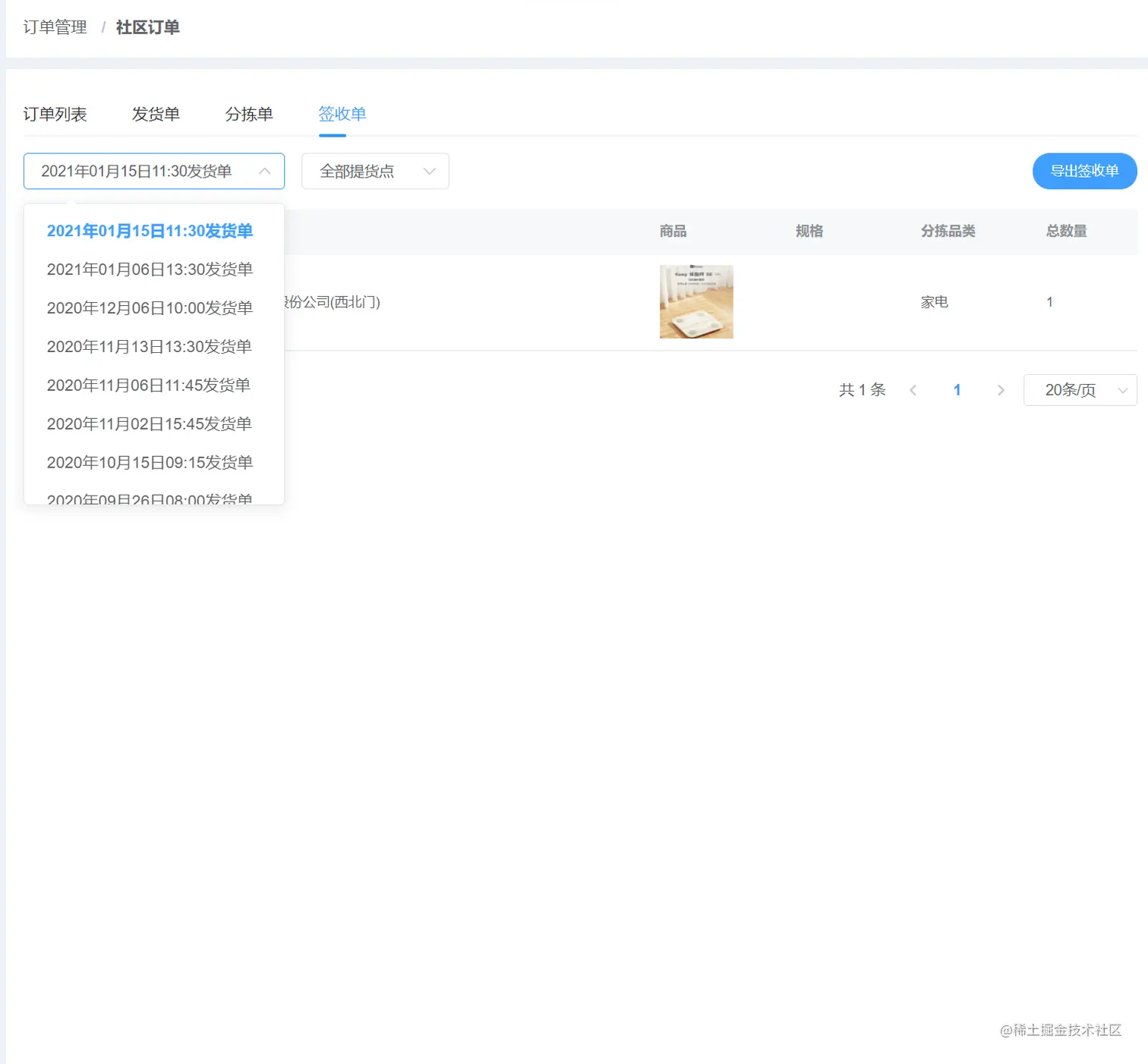 社区订单 签收单