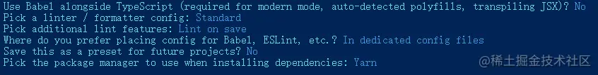 - Pick the package manager to use when installing dependencies 包管理器用啥安装,这里选择yarn,