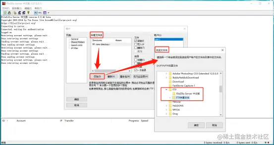 首先在本地安装部署FileZillaServer,根据实际情况配置好需要共享或远程访问的文件,都是互联网老人了,就不一一介绍安装步骤了,万一不会请详询百度。