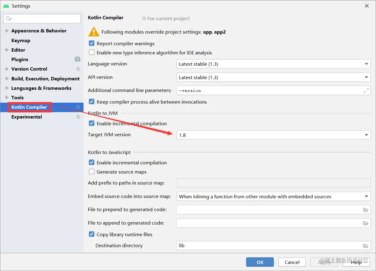 Cannot inline bytecode built with JVM target 1.8 into bytecode that is being built with JVM target 1.6. Please specify proper '-jvm-target' option