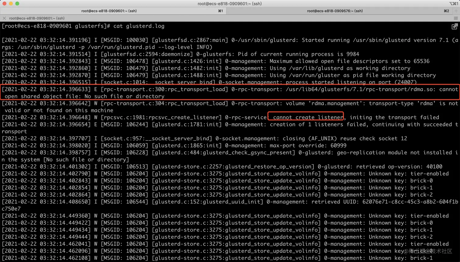 随后查看glusterfs 的日志希望的到一些信息(glusterfs 日志目录在 /var/log/glusterfs/glusterd.log)