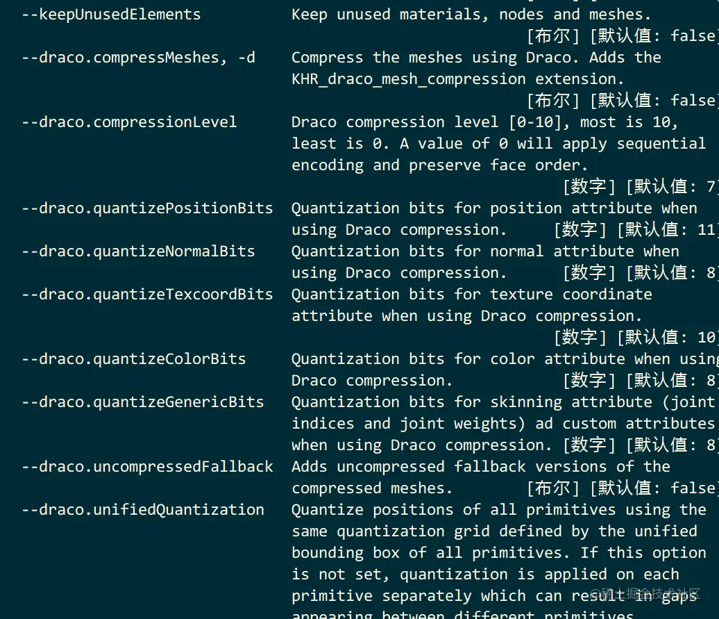 使用gltfpack的好处是向量化的参数是可以调整的(需要meshopt扩展),比如法线需要更高精度的话修改-vn即可,具体使用阅读gltfpack -h即可