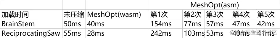 貌似莫得效果,估计是warm up的次数没够,Triangle-meshopt.glb,只有3个顶点,执行5次也就15个,量级没上去。从Web 3D是否需要WebAssembly?找到了答案