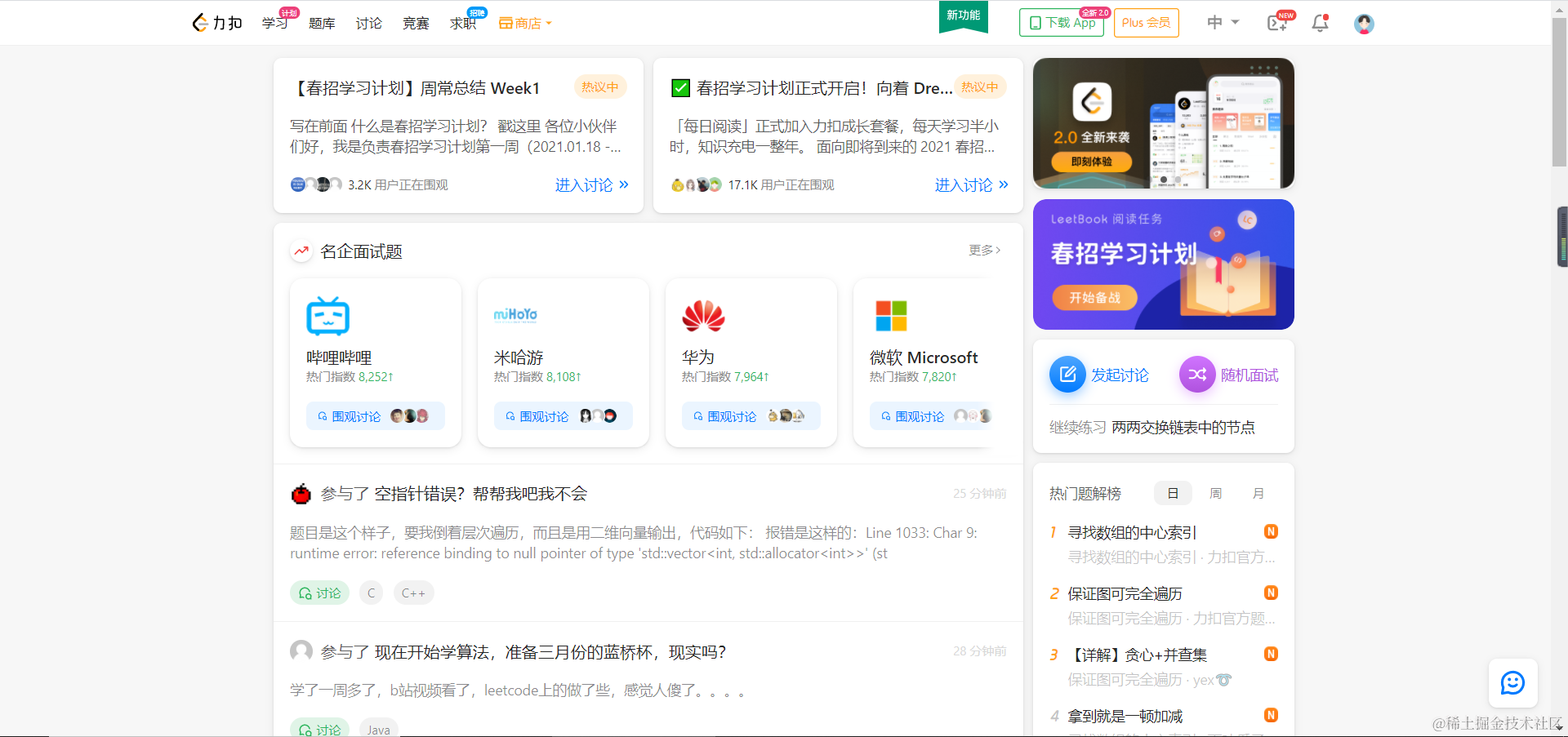 这个网站是让你进大厂打基础的,里面有很多的算法题,分为简单,中等和困难(我只配中等。。。),值得强调的是,每个题都有题解。