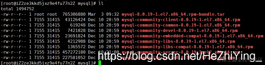 tar -xvf mysql-8.0.19-1.el7.x86_64.rpm-bundle.tar