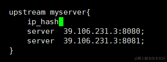 ip_hash,意思是如果某个ip地址第一次访问是8080,那么以后都访问8080,如果第一次访问是8081,那么以后都是访问8081