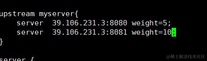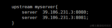 在http块下添加一个upstream,并给这个upstream取个名字,这里我取myserver