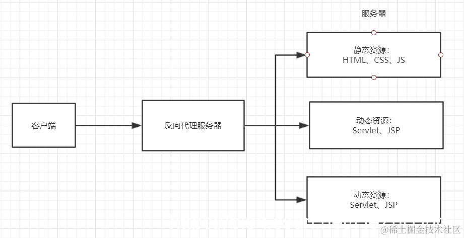 但是,当我们有大量的请求访问服务器时,我们的服务器会承受不了,我们可以通过提升服务器的配置,但是不能从根本上解决问题,于是我们就增加服务器的数量,如果请求很多,一台服务器处理不了,我们来可以多来两台,而这三台服务器怎么处理请求大量的请求呢,这就是负载均衡了,通过反向代理实现