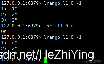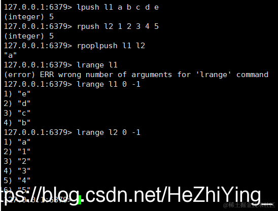 lrange key start stop,遍历一个列表,从起始下标到中止下标,-1代表最后一个