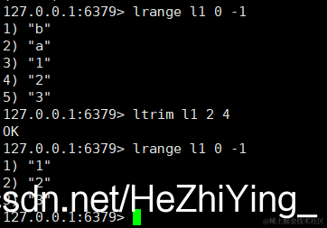 ltrim key start stop,对列表进行修剪,只保留指定区间的元素
