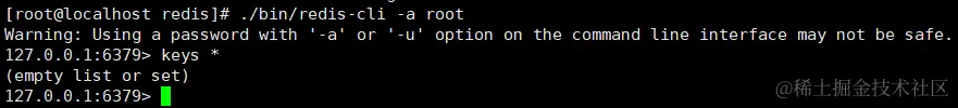 这里的-h是主机ip地址,-p是端口号,-a是密码,访问本机的话ip可以省略,端口号省略默认是6379