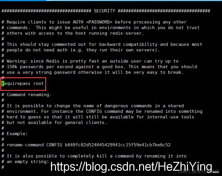 requirepass既然我们设置了允许远程访问,那密码是必不可少的,如果我们设置了密码,客户端连接redis时需要通过auto <password>命令提供密码,这里我们设置密码为root